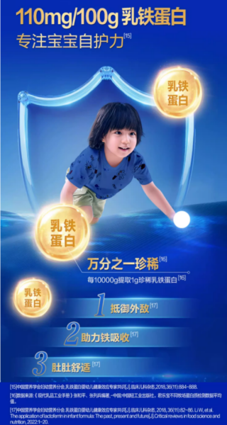 9月中旬,优萃宝爱奶粉还荣获了“2025 NutraIngredients Awards年度婴幼儿营养奖”,我查阅了资料,发现这是君乐宝奶粉第三年获得这个奖项了,这次得奖的优萃宝爱奶粉主要是含有君乐宝奶粉的“关注脑体双优”[1]科研成果。这个成果是以活性免疫球蛋白IgG和发现的更好吸收的[14]sn-2 DHA为核心,进行婴幼儿奶粉配方研发,通俗来说,就是帮助宝宝“关注脑体双优”[1],全面成长的。所以优萃宝爱奶粉的优秀真的离不开于君乐宝奶粉多年来的科研支持!而且这个奖项的含金量非常高,优萃宝爱奶粉能获得这个奖项,正是行业对君乐宝奶粉科研创新的高度肯定,更是彰显了品牌的雄厚实力。